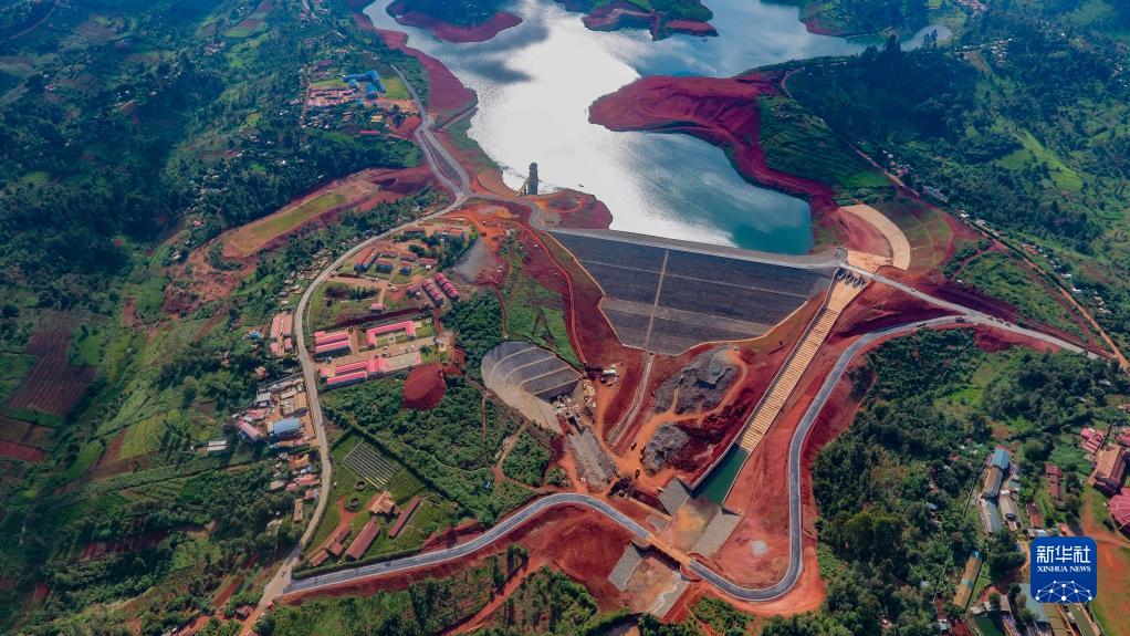 这是6月12日在距肯尼亚内罗毕约75公里的基安布郡拍摄的卡瑞曼纽大坝(航拍照片)。新华社发(中国航空技术国际控股有限公司供图)