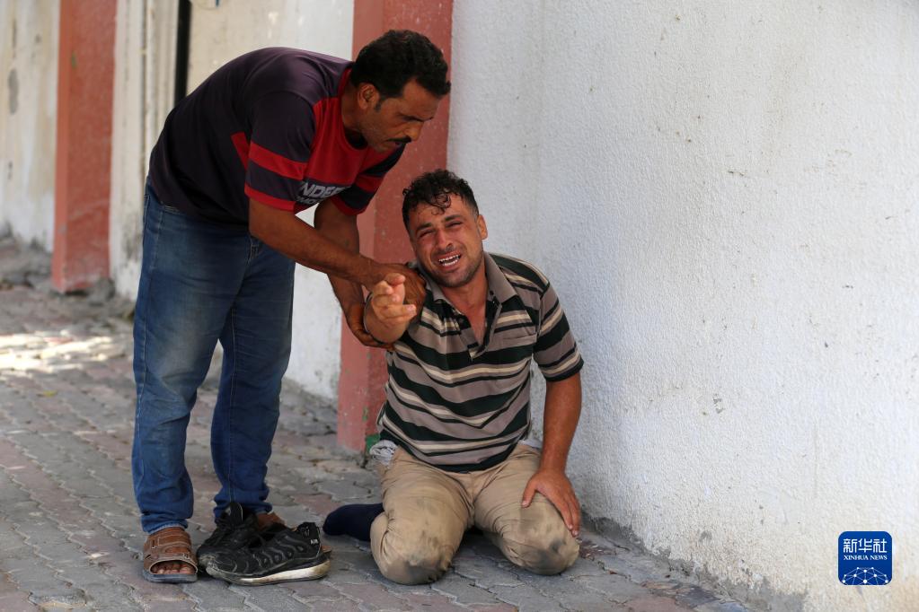 8月5日,空袭遇难者亲属在加沙地带南部城镇汗尤尼斯的一所医院哭泣。新华社发(亚西尔摄)