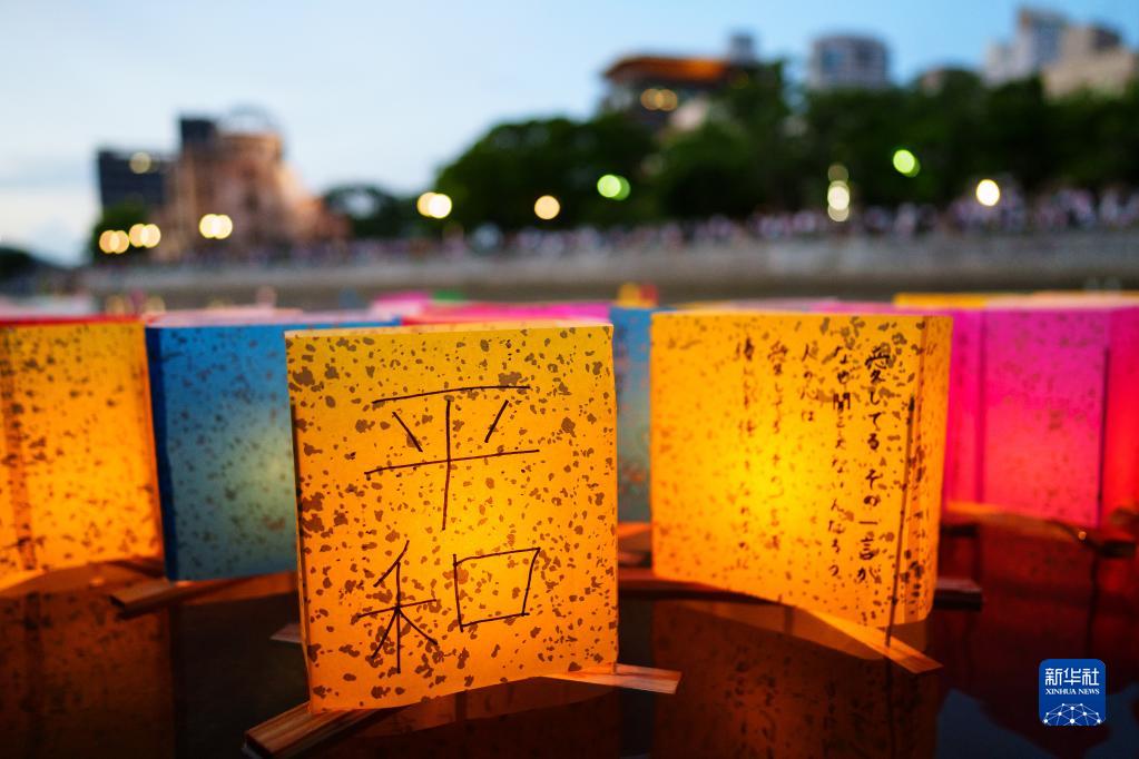 8月6日,在日本广岛和平纪念公园附近的元安川,民众放河灯祈愿和平。