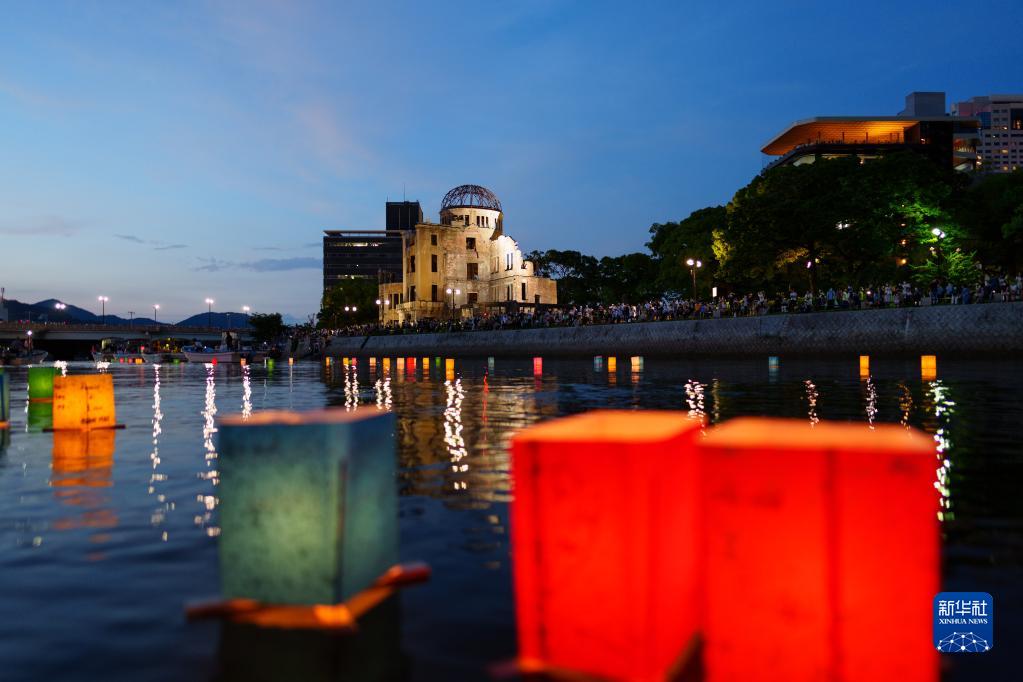 8月6日,在日本广岛和平纪念公园附近的元安川,民众放河灯祈愿和平。