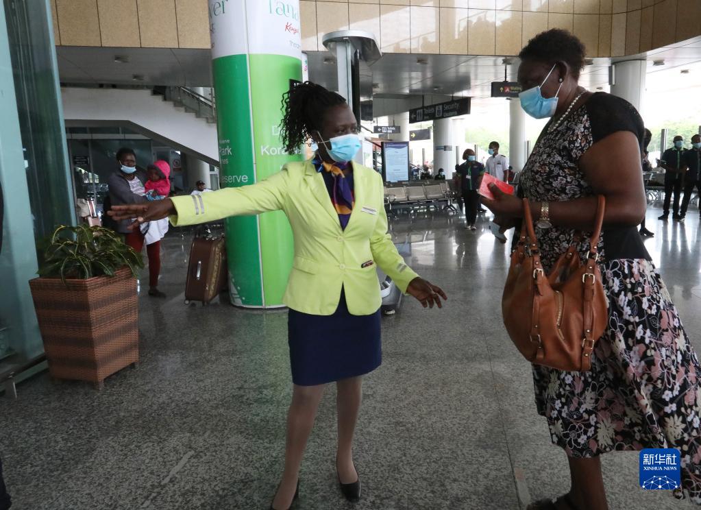 7月27日,客运员莫妮卡(左)在肯尼亚蒙内铁路蒙巴萨终点站引导乘客乘坐电梯。