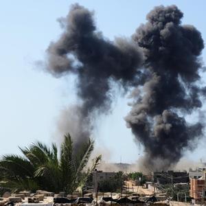 8月7日,加沙地带南部城市拉法遭遇以色列空袭后升起浓烟。新华社发(哈立德·奥马尔摄)