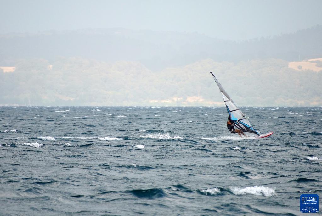 8月7日,游客在意大利布拉恰诺湖冲浪。