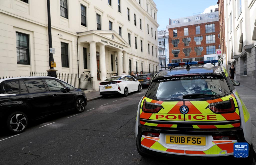 8月8日,在英国伦敦,一辆警车停在警察局门口。