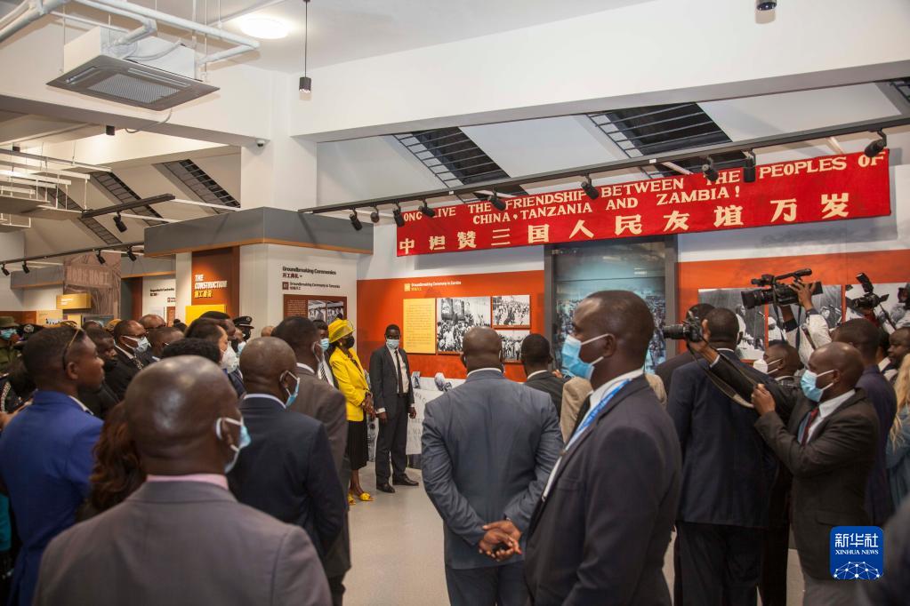 8月10日,在赞比亚卢萨卡省琼圭地区,来宾参观坦赞铁路纪念园内的纪念馆。