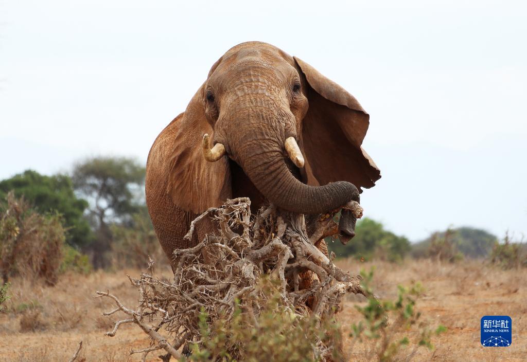 这是7月28日在肯尼亚察沃国家公园拍摄的大象。