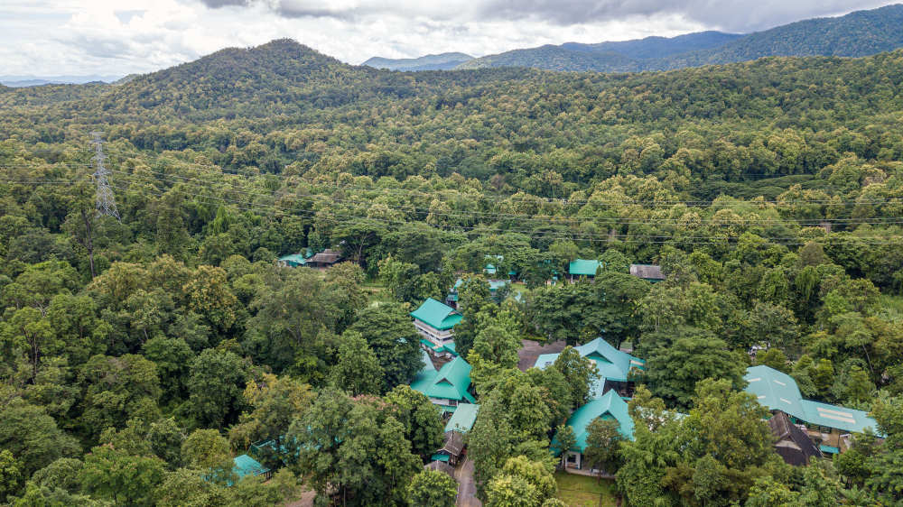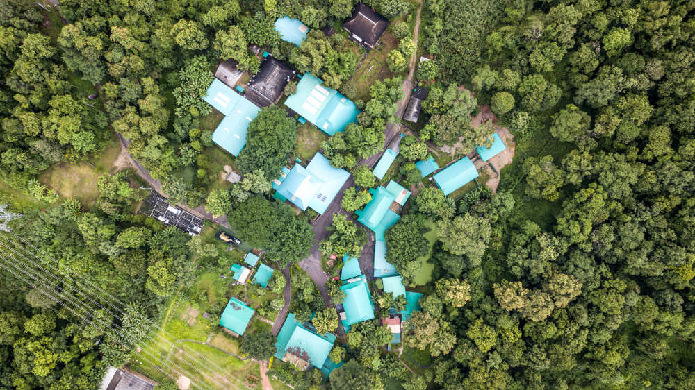 ↑这是8月6日在泰国南邦府拍摄的“亚洲象之友”大象医院(无人机照片)。
