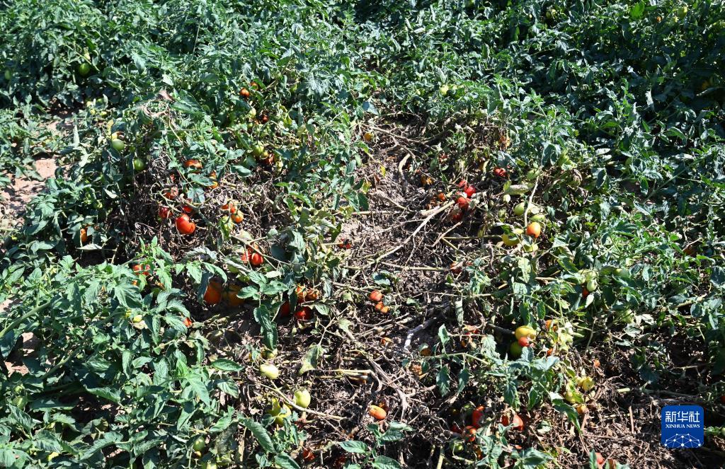这是8月12日在意大利伦巴第大区曼托瓦拍摄的因干旱受损的西红柿。