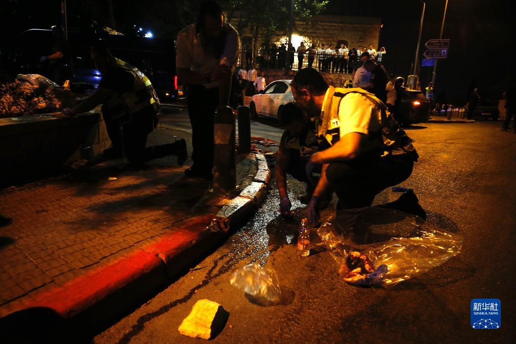 8月14日,以色列安全人员在耶路撒冷老城附近的枪击事件现场调查。