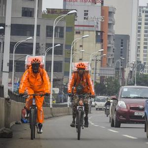 在埃塞俄比亚首都亚的斯亚贝巴,外卖服务仍是一项新鲜事物。目前,大约400名外卖骑手正通过骑行改变着当地送餐方式。