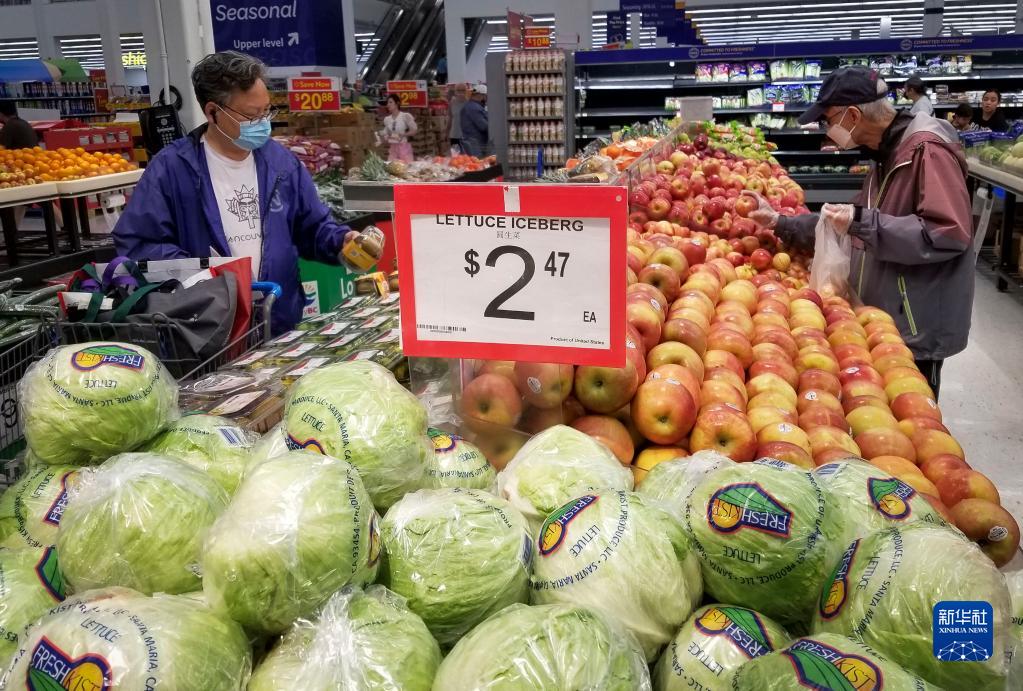 8月16日,顾客在加拿大温哥华一家超市选购食品。
