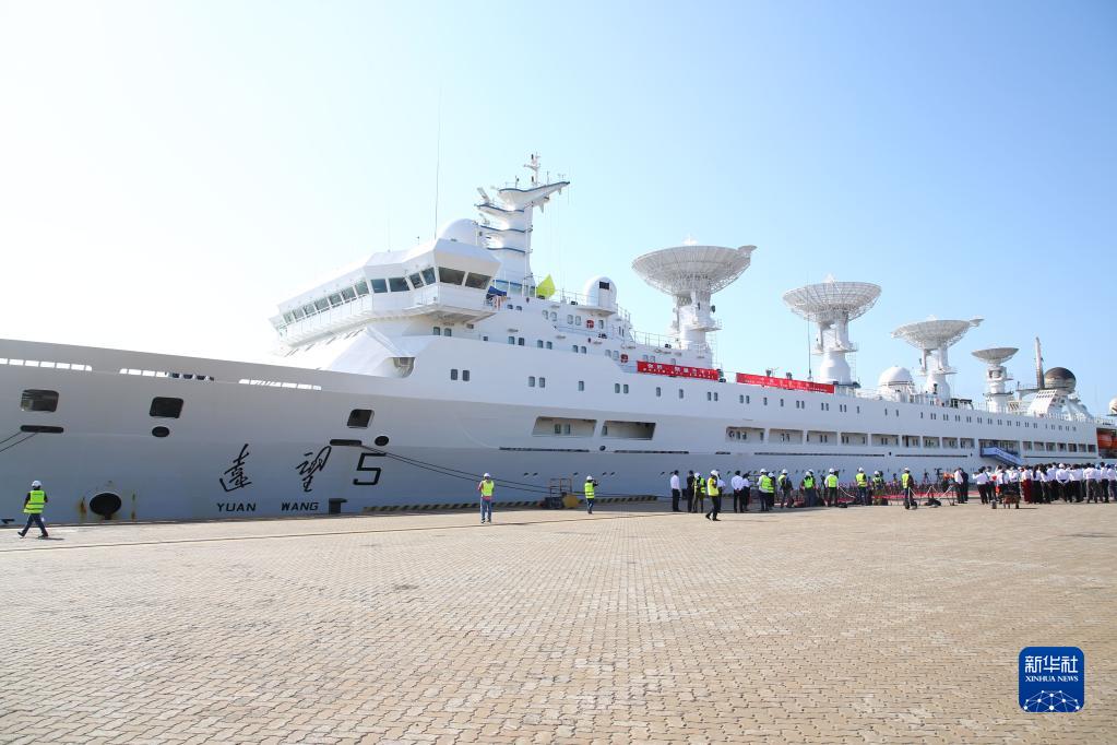 8月16日,中国远望5号船停靠在斯里兰卡南部汉班托塔港。新华社记者 车宏亮 摄