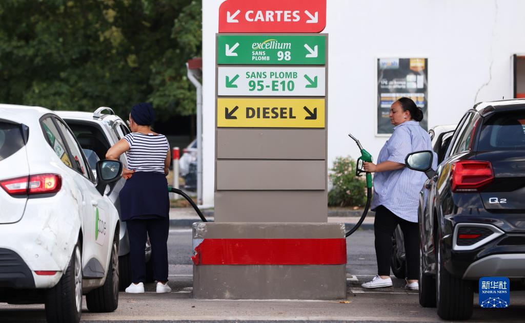 8月18日, 人们在法国巴黎郊区的一处加油站加油。