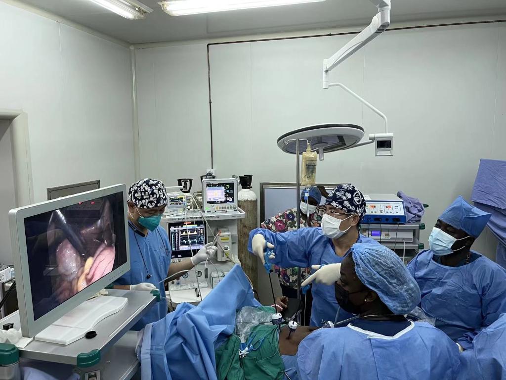 回想两个月前腹腔镜手术团队刚起步时,每次做手术都会面临各种“小插曲”,诸如镜头图像无法显示、单极电钩干扰图像等,好在问题大多都顺利解决了。该是考虑“授人以渔”的时候了!我们自费购买并空运过来的腹腔镜训练模拟箱下周就到货,争取让当地年轻医生早日操练起来!(记者:张玉亮、许正、谢昊、金正、周楚昀、张保平;编辑:徐晓蕾、王丰丰)