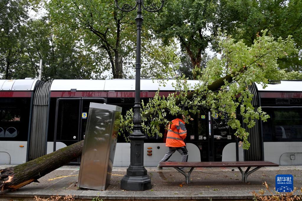 这是8月18日在意大利托斯卡纳大区首府佛罗伦萨拍摄的被刮倒的树木。
