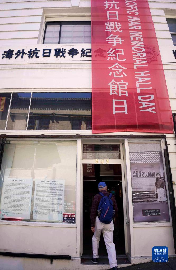 8月20日,在美国旧金山,一名男子进入海外抗日战争纪念馆参观。新华社记者 吴晓凌 摄
