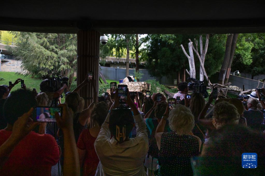 8月21日,在美国华盛顿史密森学会国家动物园,人们在大熊猫幼崽“小奇迹” 两岁生日当天前来参观。