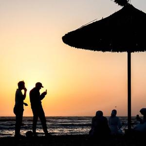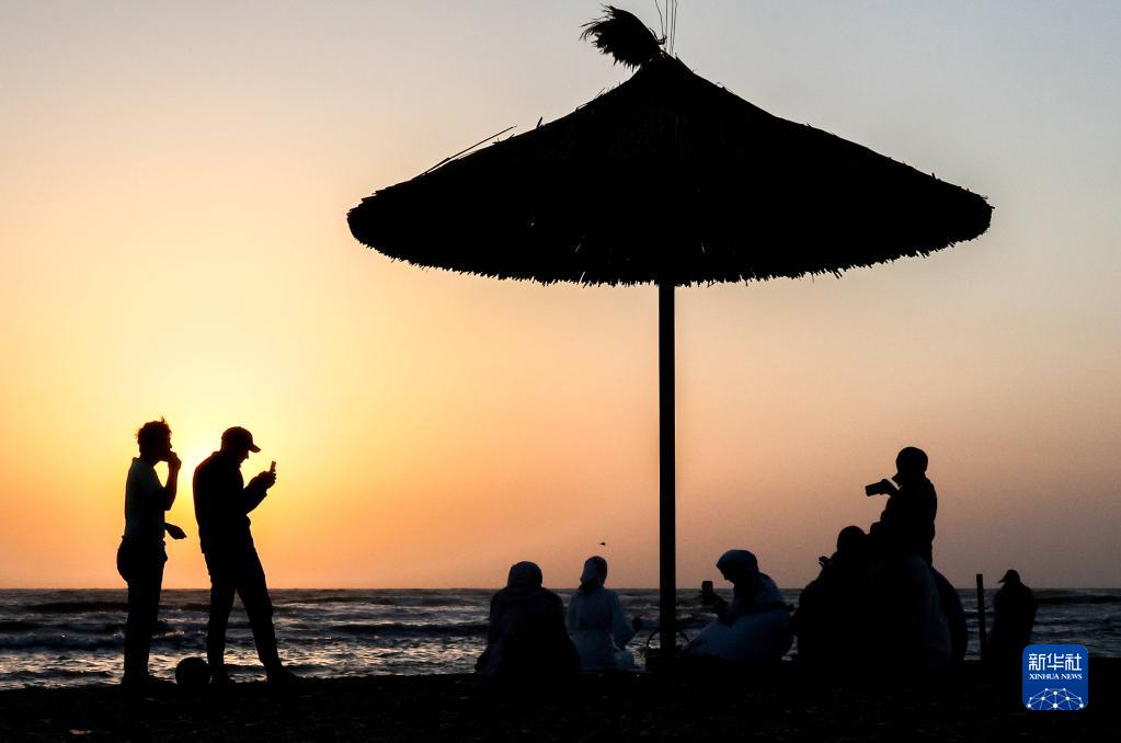 8月21日,人们在俄罗斯达吉斯坦共和国马哈奇卡拉市的海滨休闲。新华社/塔斯社