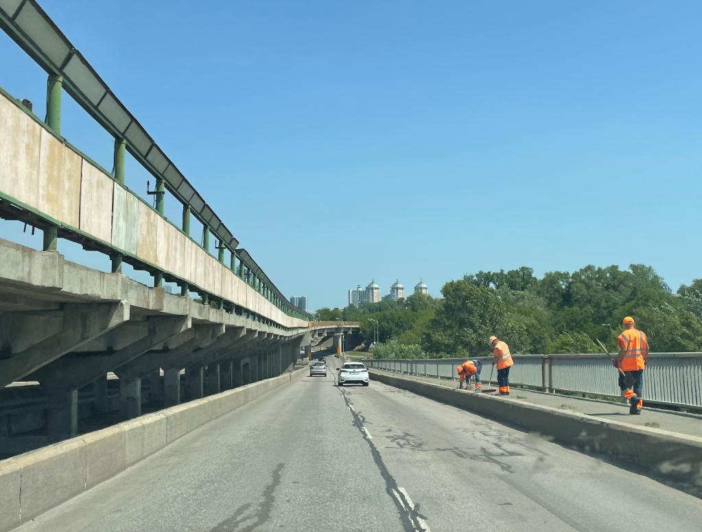 6月20日,市政人员在乌克兰基辅修复受损的地铁桥路面。新华社记者李东旭摄
