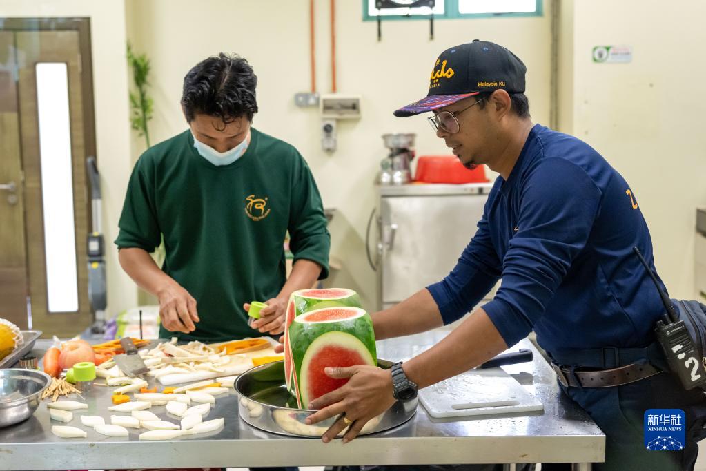 8月23日,在马来西亚吉隆坡附近的马来西亚国家动物园,饲养员为大熊猫“靓靓”准备生日大餐。