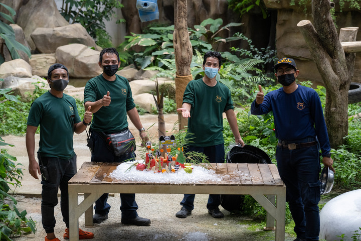 8月23日,在马来西亚吉隆坡附近的马来西亚国家动物园,饲养员为大熊猫“兴兴”准备生日大餐。新华社记者朱炜摄