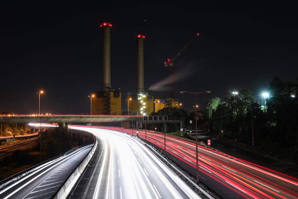 这是2021年10月8日在德国首都柏林拍摄的一座正在拆除烟囱的热电厂。新华社记者单宇琦摄
