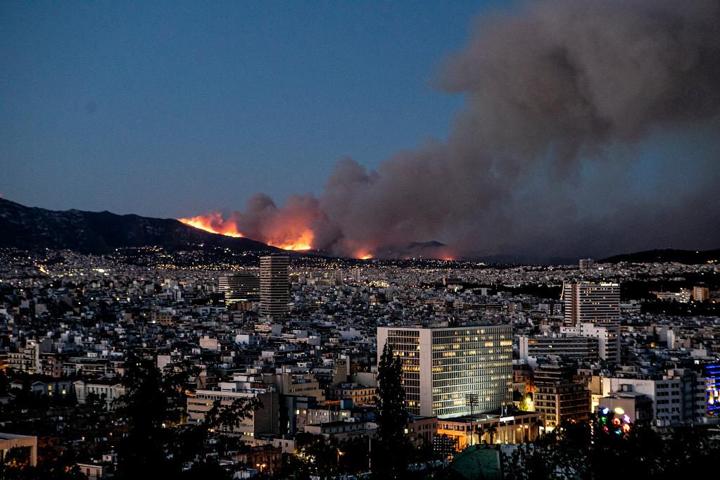这是7月19日在希腊雅典拍摄的山火。新华社发(帕纳约蒂斯摄)