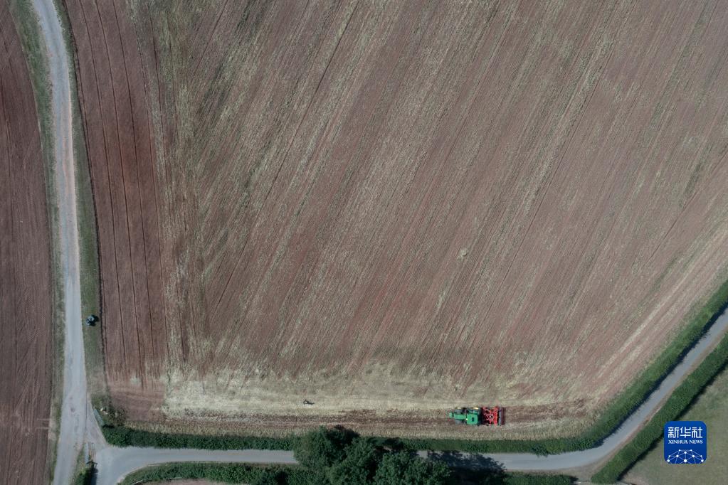 这是8月31日在英国斯塔福德郡拍摄的受干旱影响的农田(无人机拍摄)。