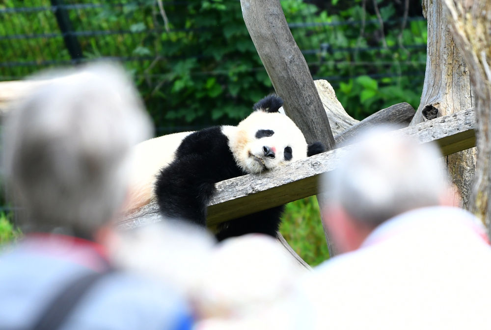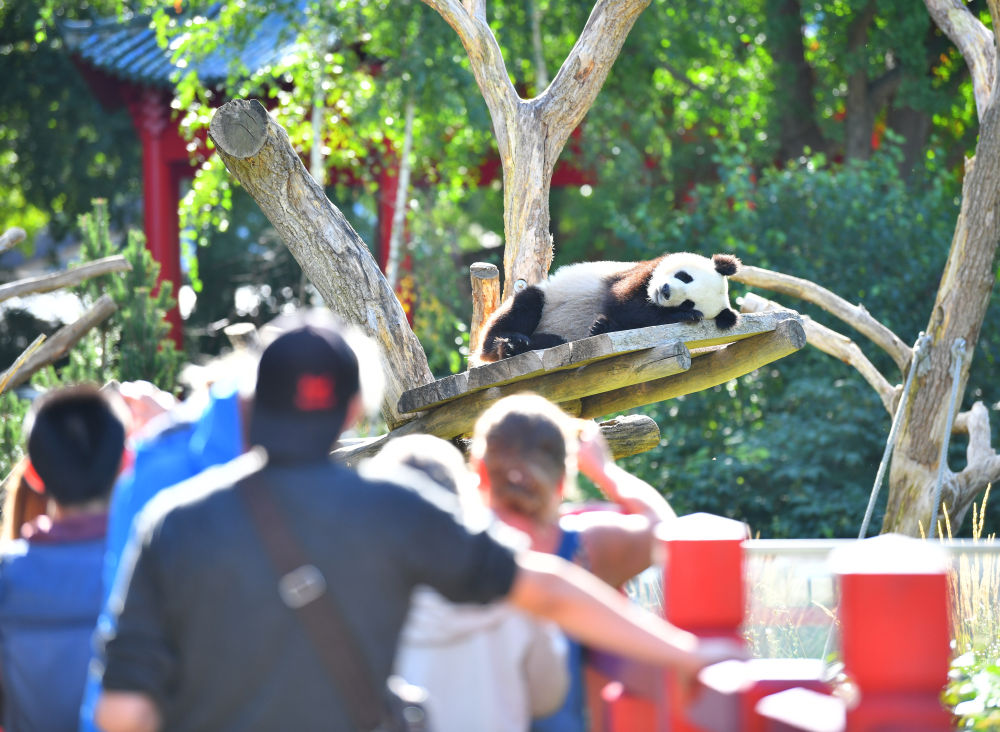 ↑8月31日,人们在德国柏林动物园观看大熊猫“梦想”。