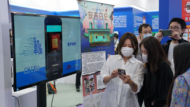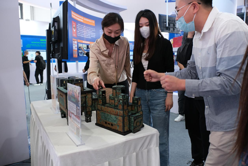 新华网北京9月2日电(薛臣)2022年中国国际服务贸易交易会8月31日在北京开幕。在服贸会首钢园区,中国外文局展示的文创项目,旨在通过“数字+”的方式,将文化元素嵌入创意设计环节,面向海内外用户推出数字文化精品。