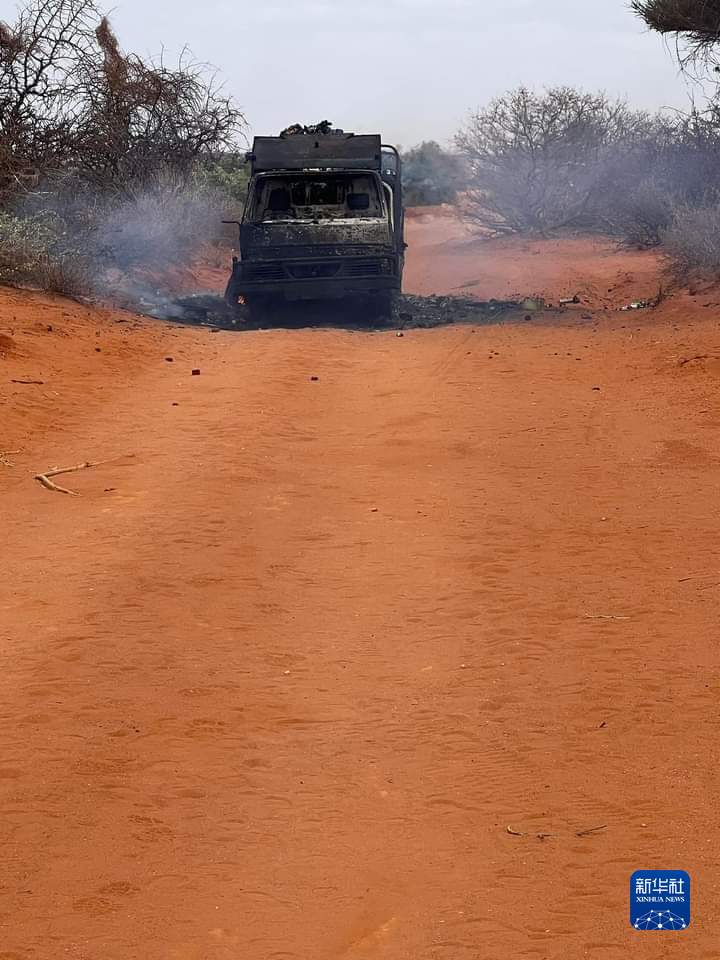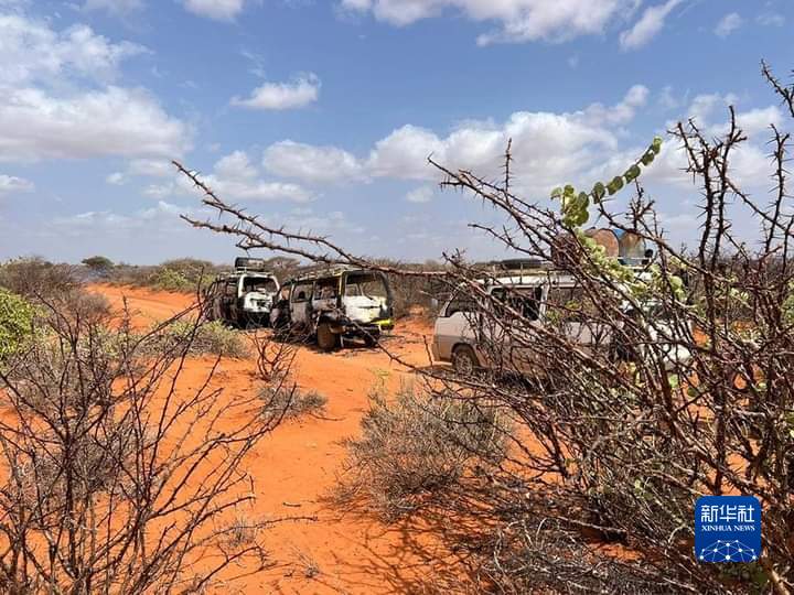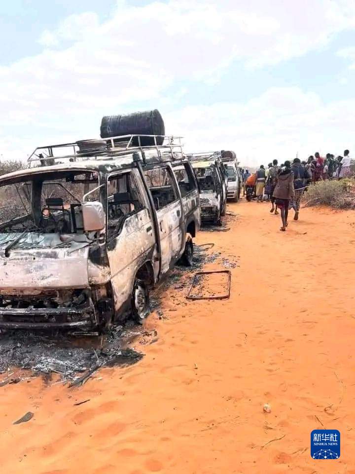 这是9月3日在索马里中部希兰地区拍摄的车队遇袭现场(手机拍摄)。新华社发(哈希 摄)