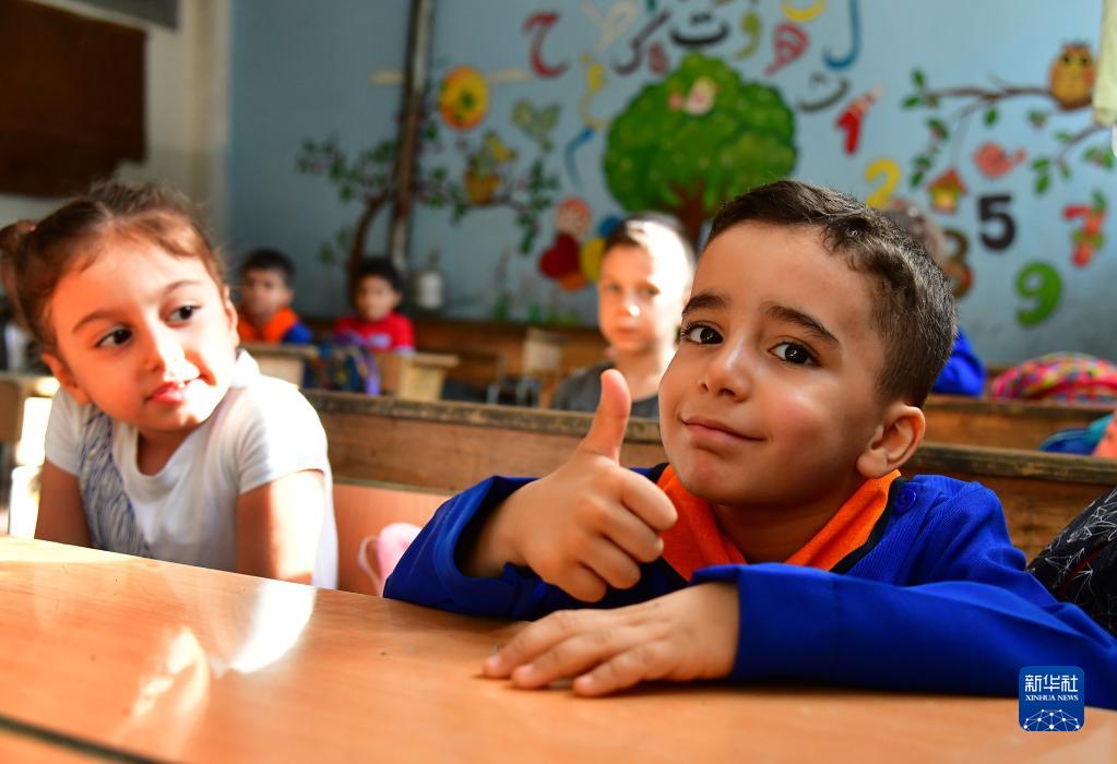 9月4日,叙利亚大马士革一所学校的学生在教室里上课。