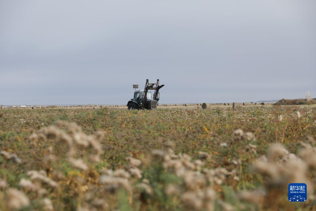 哈萨克斯坦北部地区9月进入牧草集中收割的季节,成片的牧草被牧民收割、晒干并捆成草垛,以备牲畜在冬季食用。新华社发(奥斯帕诺夫摄)