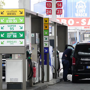 9月8日,一名男子在德国柏林的加油站给汽车加油。