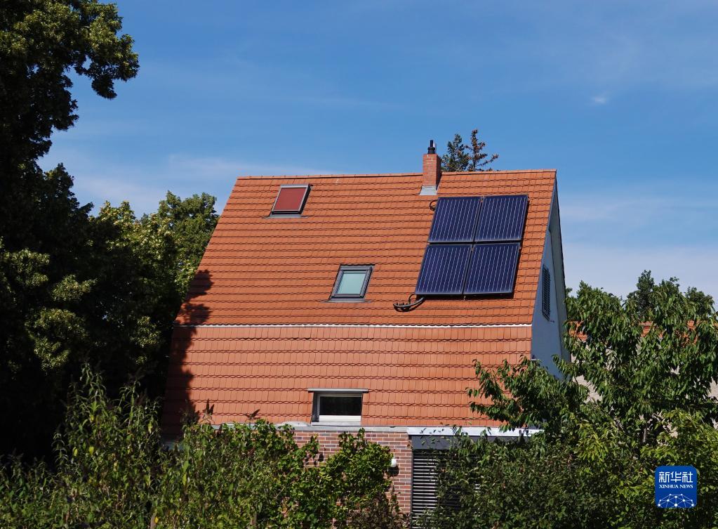这是8月3日在德国柏林拍摄的一户人家房屋上的太阳能面板。