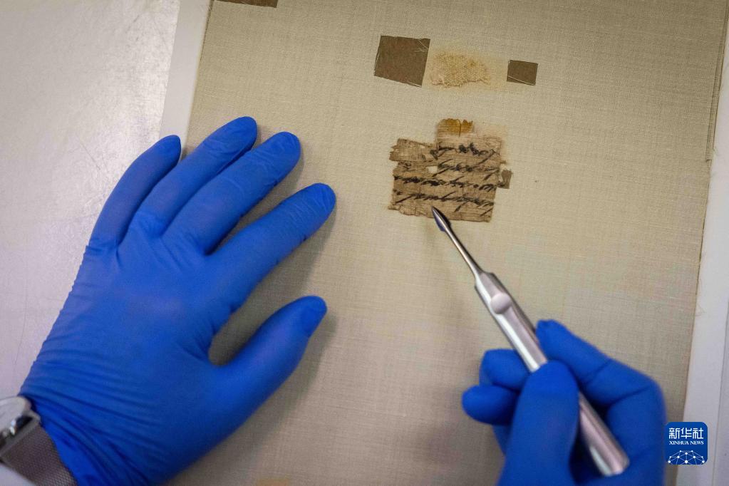 9月7日,在耶路撒冷,研究人员展示记录古希伯来语信息的莎草纸信件碎片。