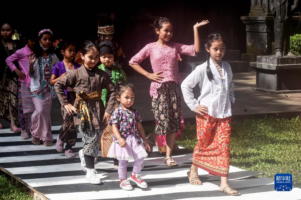 这是9月4日在印度尼西亚南唐格朗的普斯波多约群岛文化中心拍摄的可巴雅服装秀现场。