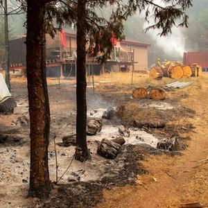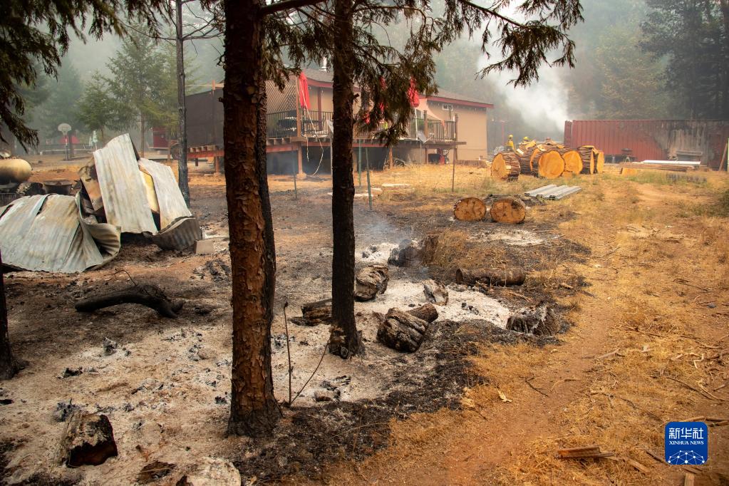 这是9月9日在美国加利福尼亚州北部塔霍湖附近的森林拍摄的火灾过后的景象。