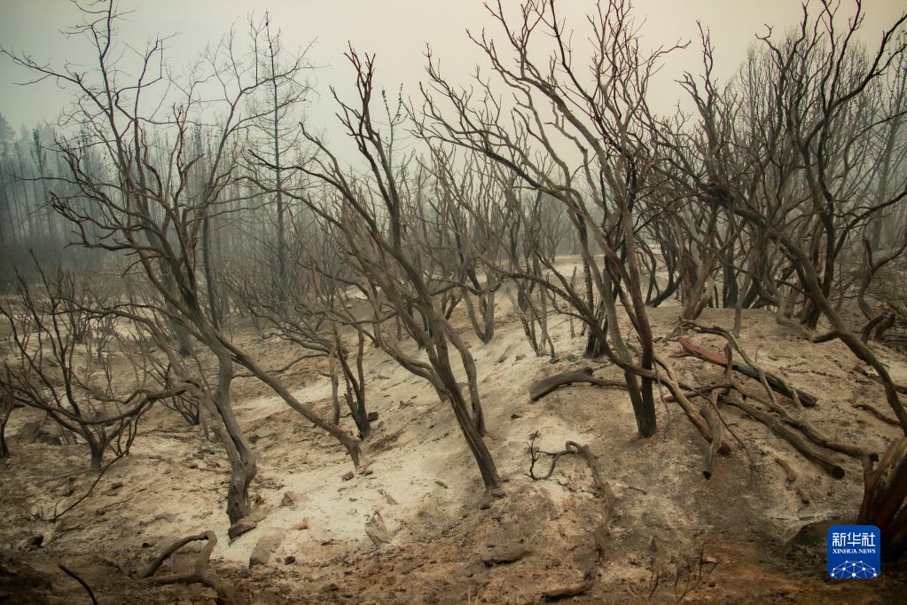 这是9月9日在美国加利福尼亚州北部塔霍湖附近的森林拍摄的火灾过后的景象。