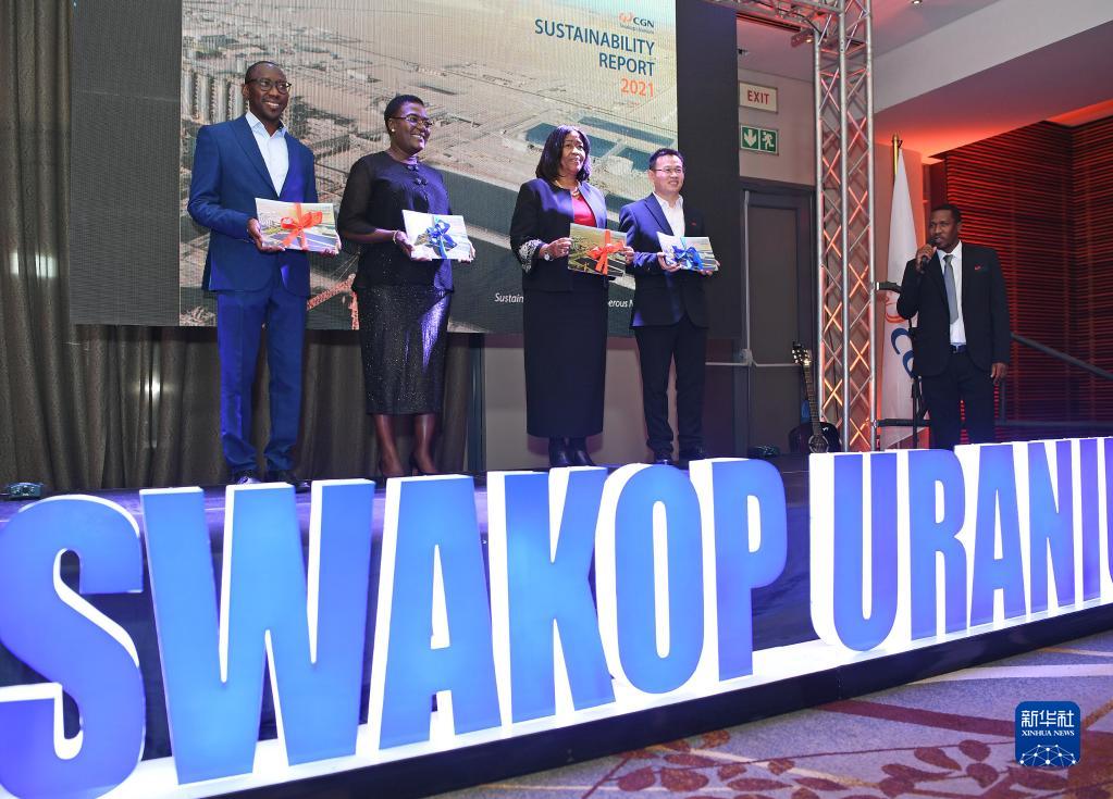 这是8月30日在纳米比亚温得和克拍摄的斯科公司报告发布会现场。