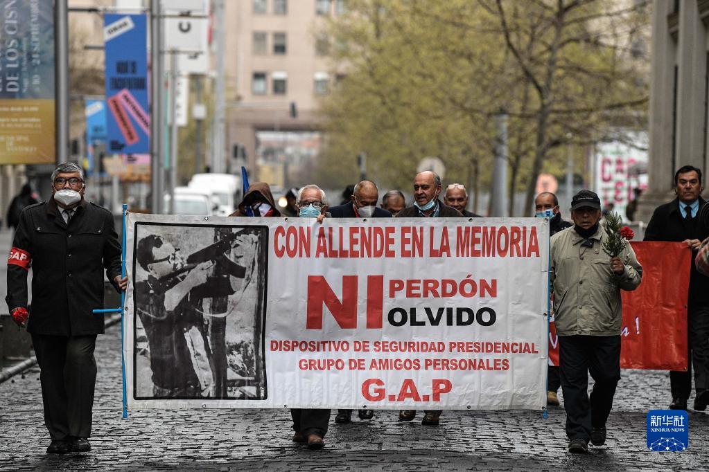 9月11日,智利民众在首都圣地亚哥集会,纪念前总统阿连德遇难49周年。