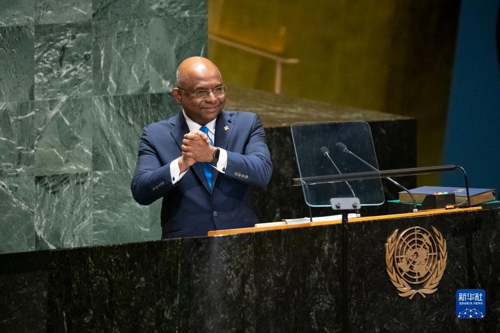 9月12日,在位于纽约的联合国总部,第76届联合国大会主席沙希德在第76届联合国大会闭幕会上发表讲话。