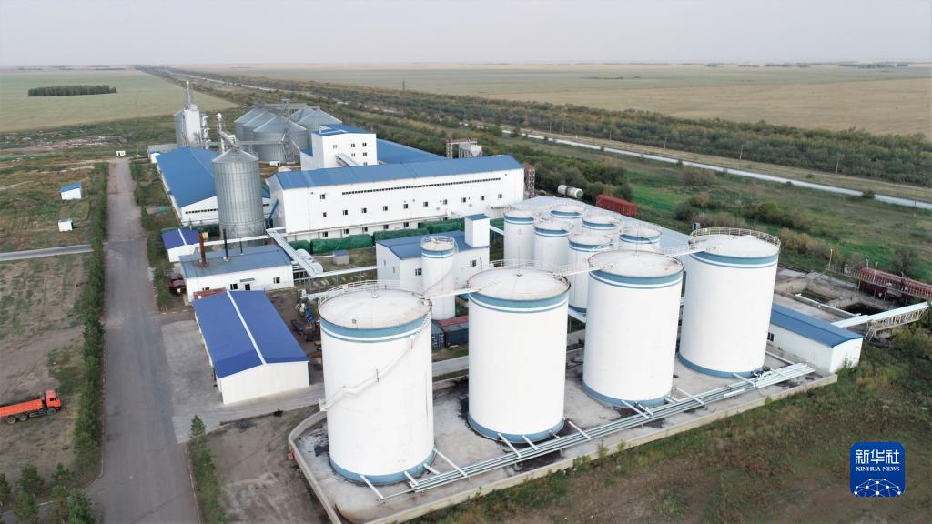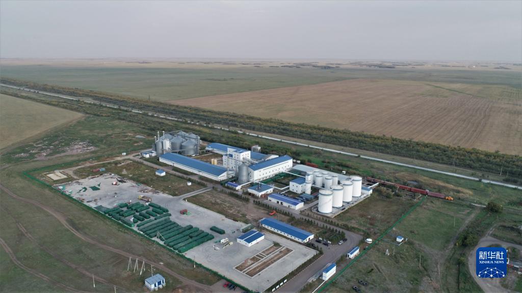 这是9月2日在哈萨克斯坦北哈萨克斯坦州拍摄的爱菊农产品物流加工园区(无人机照片)。新华社发(奥斯帕诺夫摄)