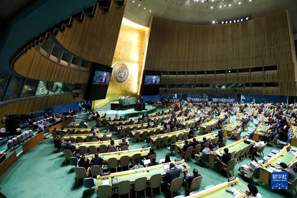 9月13日,第77届联合国大会第一次全会在位于纽约的联合国总部举行。新华社记者 王迎 摄