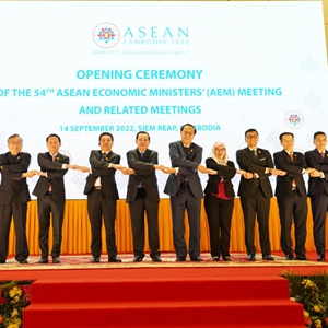 第54届东盟经济部长会议14日在柬埔寨暹粒拉开帷幕,会议主要讨论东盟经济共同体一体化进程、疫情后经济复苏以及应对经济挑战等议题。