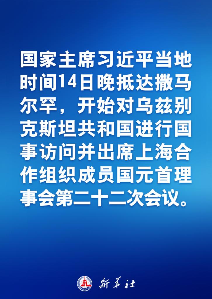 新华社快讯:国家主席习近平当地时间14日晚抵达撒马尔罕,开始对乌兹别克斯坦共和国进行国事访问并出席上海合作组织成员国元首理事会第二十二次会议。