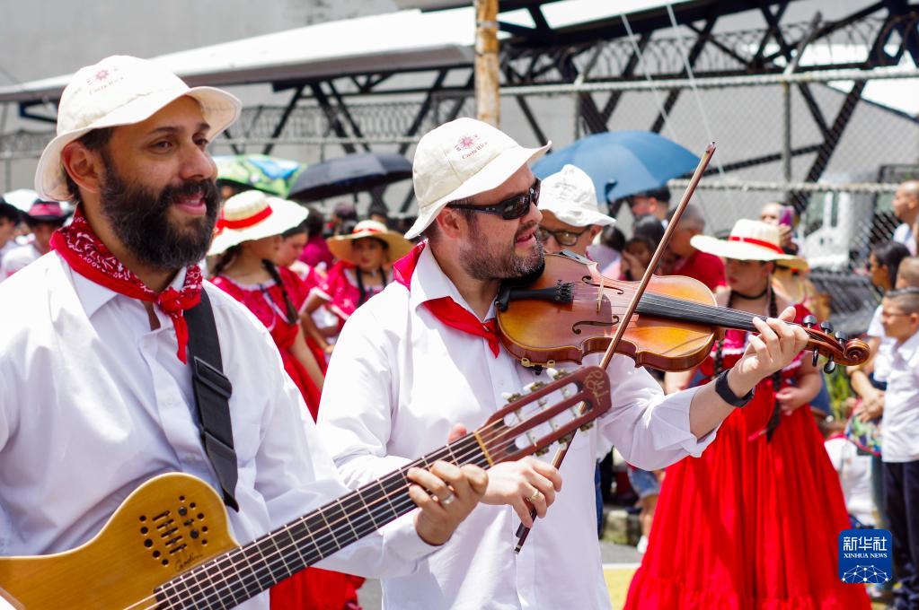 9月15日,在哥斯达黎加埃雷迪亚,民众走上街头欢庆该国独立201周年。