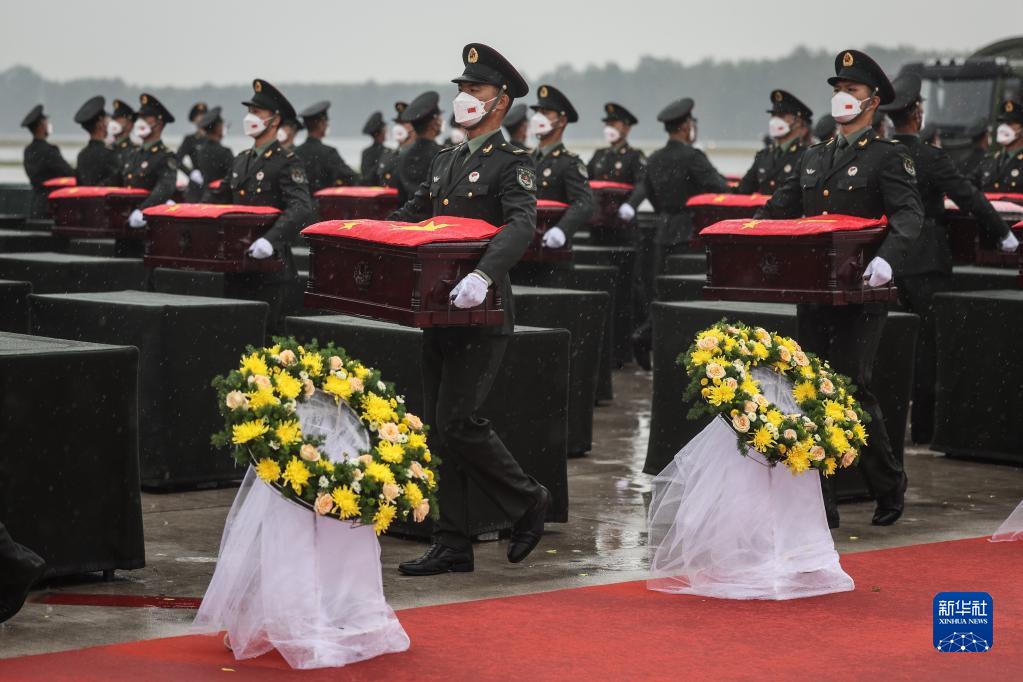 当日,第九批在韩中国人民志愿军烈士遗骸由我空军专机护送从韩国接回辽宁沈阳,88位志愿军烈士遗骸及相关遗物回到祖国。