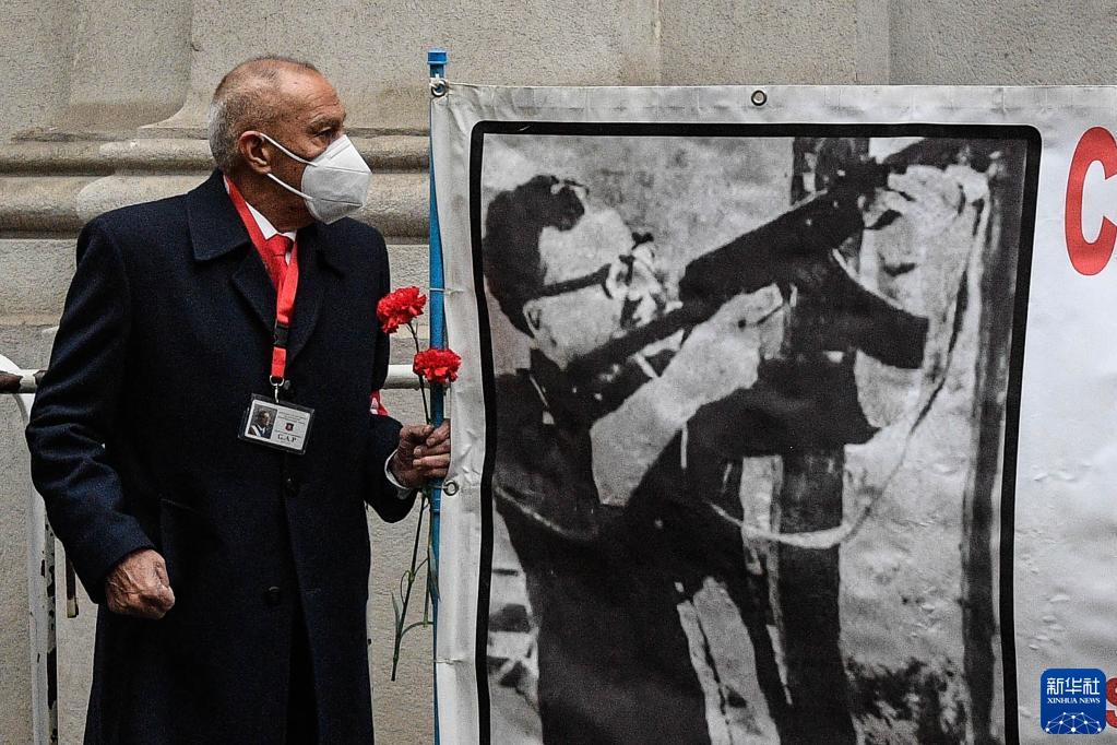 9月11日,在智利首都圣地亚哥,一名男士手执红色康乃馨纪念前总统阿连德遇难49周年。