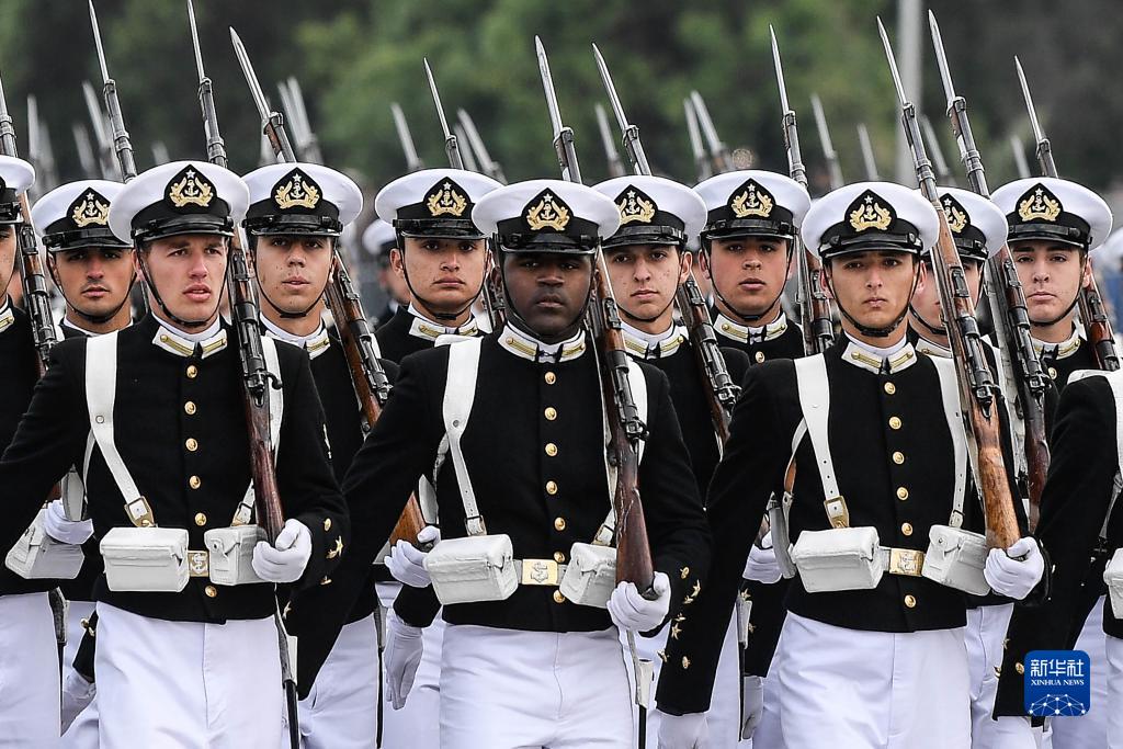 9月19日,在智利首都圣地亚哥,海军士兵在阅兵式上列队行进。